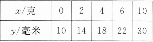 由表中数据的规律可知,当$x = 20$克时,$y = $