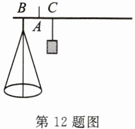 12. (宁夏自治区中考)如图是某种杆秤的示意图。在秤杆的点$A$处固定提纽,点$B$处挂秤盘,点$C为0$刻度点。当秤盘不放物品时,提起提纽,秤砣所挂位置移动到点$C$,秤杆处于平衡。秤盘放入$x$克物品后移动秤砣,当秤砣所挂位置与提纽的距离为$y$毫米时秤杆处于平衡。测得$x与y$的几组对应数据如下表: