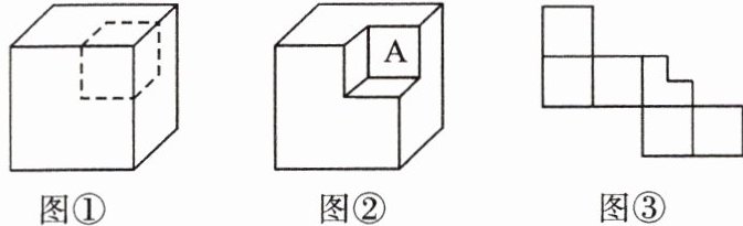 11. (核心素养·空间观念)如图①所示,从大正方体中截去一个小正方体之后,可以得到图②的几何体.
