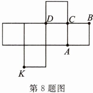 8. (威海市中考)如图是一正方体的表面展开图. 将其折叠成正方体后,与顶点K距离最远的顶点是 (