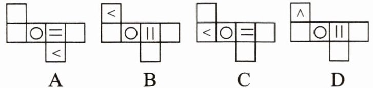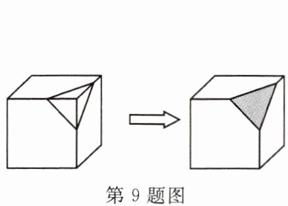 9. 如图,将图中的正方体纸盒切去一角得到右图,下列选项中,不能作为纸盒剩余部分的展开图的是 (