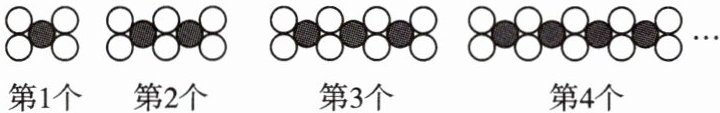 7.(山西省中考)如图是一组有规律的图案,它由若干个大小相同的圆片组成。第1个图案中有4个白色圆片,第2个图案中有6个白色圆片,第3个图案中有8个白色圆片,第4个图案中有10个白色圆片,…。依此规律,第n个图案中有