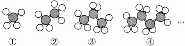 9.(重庆市中考)烷烃是一类由碳、氢元素组成的有机化合物质,下图是这类物质前四种化合物的分子结构模型图,其中灰球代表碳原子,白球代表氢原子。第1种如图①有4个氢原子,第2种如图②有6个氢原子,第3种如图③有8个氢原子,……按照这一规律,第10种化合物的分子结构模型中氢原子的个数是(