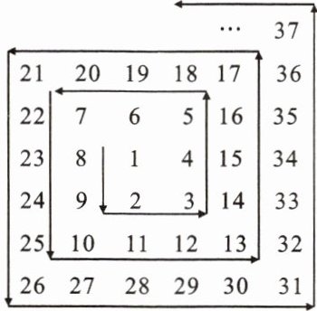 9. (聊城市中考)如图,图中数字是从 1 开始按箭头方向排列的有序数阵.从 3 开始,把位于同一列且在拐角处的两个数字提取出来组成有序数对:$(3,5)$;$(7,10)$;$(13,17)$;$(21,26)$;$(31,37)$;….如果单独把每个数对中的第一个或第二个数字按顺序排列起来研究,就会发现其中的规律.请写出第$n$个数对: