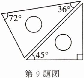 9. 如图,是一副特殊的三角板,用它们可以画出一些特殊角,不能利用这副三角板画出的角度是(