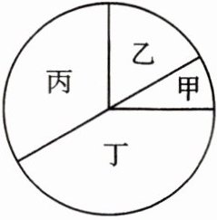 解:甲:$360^{\circ }×\frac {1}{1+2+4+5}=30^{\circ }$;乙:$360^{\circ }×\frac {2}{1+2+4+5}=60^{\circ }$;丙:$360^{\circ }×\frac {4}{1+2+4+5}=120^{\circ }$;丁:$360^{\circ }×\frac {5}{1+2+4+5}=150^{\circ }.$