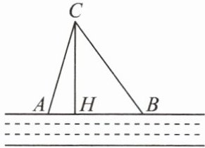 16. 笔直的河流一侧有一旅游地$C$,河边有两个漂流点$A$,$B$. 其中$AB = AC$,由于某种原因,由$C到A$的路现在已经不通了,为方便游客,决定在河边新建一个漂流点$H(A$,$H$,$B$在同一直线上),并新修一条路$CH$,测得$BC = 5$千米,$CH = 4$千米,$BH = 3$千米.
