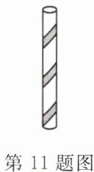 11. 如图是学校艺术馆中的柱子,高$4.5\mathrm{m}$. 为迎接艺术节的到来,工作人员用一条花带从柱底向柱顶均匀地缠绕 3 圈,一直缠到起点的正上方为止. 若柱子的底面周长是$2\mathrm{m}$,则这条花带至少需要
