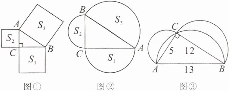 (3)如图③,在$Rt\triangle ABC$中,$\angle ACB = 90^{\circ}$,三边长分别为 5,12,13,分别以它的三边长为直径向上作半圆,求图③中阴影部分的面积.