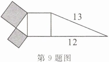 9. 如图是由两个直角三角形和三个正方形组成的图形,大直角三角形的斜边和其中一直角边长分别是 13,12,则图中阴影部分的面积是(