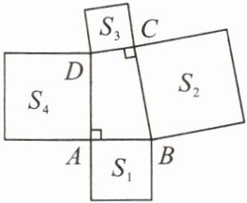 14.(核心素养·几何直观)(1)如图①所示,在$Rt\triangle ABC$中,$\angle ACB = 90^{\circ}$,$BC = a$,$AC = b$,$AB = c$,以$Rt\triangle ABC的三边长向外作的正方形的面积分别为S_{1}$,$S_{2}$,$S_{3}$,直接写出$S_{1}$,$S_{2}$,$S_{3}$之间存在的等量关系为