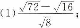 (1)解:原式=√72/√8-√16/√8=√9-√2=3-√2.