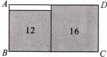 11. (创新题)如图,在长方形$ABCD中无重叠地放入面积分别为16cm^2和12cm^2$的两张正方形纸片,则图中空白部分的面积为