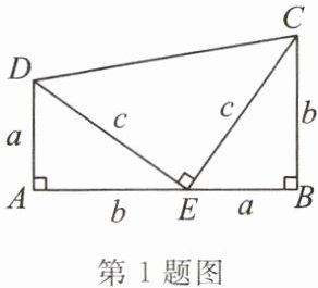 1. 历史上对勾股定理的一种证法采用了如图图形,其中两个全等的直角三角形边AE,EB在一条直线上.证明中用到的面积相等的关系是(