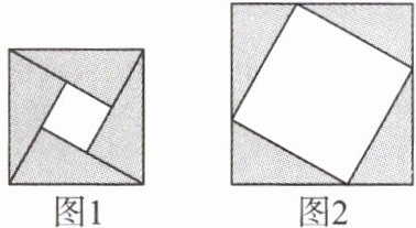 3.(眉山市中考改编)如图,图1是北京国际数学家大会的会标,它取材于我国古代数学家赵爽的“弦图”,是由四个全等的直角三角形拼成.若图1中大正方形的面积为24,小正方形的面积为4,现将这四个直角三角形拼成图2,则图2中大正方形的面积为
