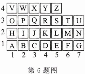 6. (新考法)一个英文单词的字母对应图中的区域依次为:$(6,2)$,$(1,1)$,$(6,3)$,$(1,2)$,$(5,3)$,则该英文单词为