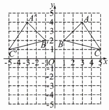 (2)如图,$\triangle ABC$ 与 $\triangle A'B'C'$ 关于 $ y $ 轴对称。