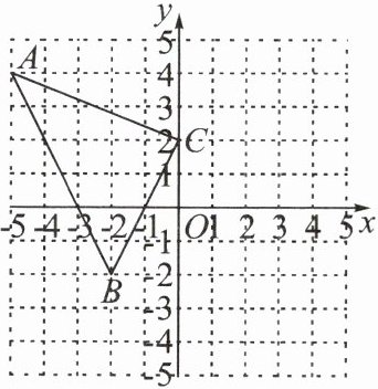 解:作AD⊥y轴于点D,BF⊥y轴于点F,延长FB交过点A且平行于y轴的直线于点E.S△ABC=S长方形ADFE - S△ABE - S△BCF - S△ADC=5×6 - $\frac{1}{2}$×3×6 - $\frac{1}{2}$×2×4 - $\frac{1}{2}$×2×5=30 - 9 - 4 - 5 = 12.