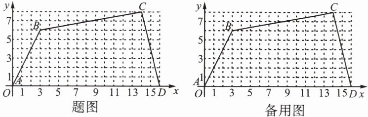 方法2:解:如备用图,作CE⊥y轴于点E,BF⊥CE于点F,DH⊥EC的延长线于点H.S四边形ABCD=S长方形ADHE - S△CDH - S△BCF - S梯形ABFE =16×8 - $\frac{1}{2}$×2×8 - $\frac{1}{2}$×11×2 - $\frac{1}{2}$×(2 + 8)×3=128 - 8 - 11 - 15=94.