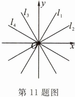 11. (教材第 91 页随堂练习第 1 题变式)如图,在同一直角坐标系中,一次函数 $ y_1 = k_1x $,$ y_2 = k_2x $,$ y_3 = k_3x $,$ y_4 = k_4x $ 的图象分别是 $ l_1,l_2,l_3,l_4 $,则 $ k_1,k_2,k_3,k_4 $ 的大小关系是