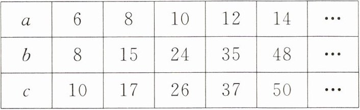 9. 在学习“勾股数”的知识时,爱动脑的小明发现了一组有规律的勾股数,并将它们记录在如下的表格中,则当 $a = 24$ 时,$b + c$ 的值为(