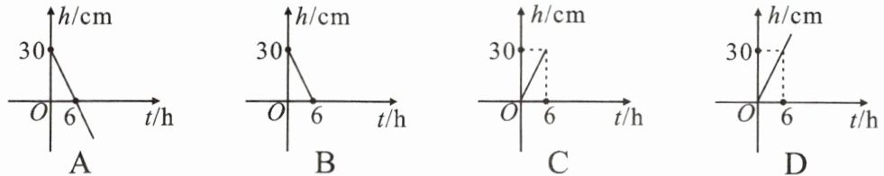 1. 一根蜡烛长 30cm,点燃后每小时燃烧 5cm,燃烧时蜡烛剩余的长度 $ h $(cm)和燃烧时间 $ t $(h)之间的函数关系用图象可以表示为图中的(