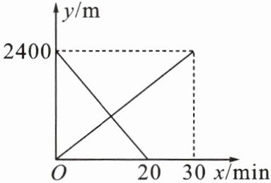 5. (盐城市中考)小丽从甲地匀速步行去乙地,小华骑自行车从乙地匀速前往甲地,同时出发.两人离甲地的距离$y(m)与出发时间x(min)$之间的函数关系如图所示.