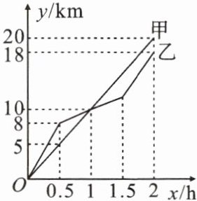 2. 在$20km$越野赛中,甲、乙两选手的行程$y(km)随时间x(h)$变化的图象如图,则下列说法中正确的是