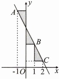 7. 如图,点 $ A $,$ B $,$ C $ 在一次函数 $ y = -2x + m $ 的图象上,它们的横坐标依次为 $ -1 $,$ 1 $,$ 2 $,分别过这些点作 $ x $ 轴与 $ y $ 轴的垂线,则图中阴影部分的面积之和是