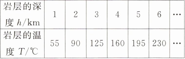 (1)解:上表反映了岩层的深度h(km)与岩层的温度T(℃)之间的关系;其中岩层的深度h(km)是自变量,岩层的温度T(℃)是因变量.