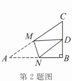 2. 如图,在$Rt\triangle ABC$中,$AB = 9$,$BC = 6$,$\angle B = 90^{\circ}$,将$\triangle ABC$折叠,使点$A与BC边的中点D$重合,折痕为$MN$,则线段$BN$的长为