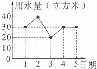 6. (湖州市中考)某住宅小区6月1日~6月5日每天用水量情况如图所示,那么这5天平均每天的用水量是 (