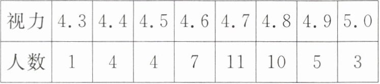 2. (扬州市中考)“有效减少近视发生,共同守护光明未来”. 某校积极响应,开展视力检查. 某班45名同学视力检查数据如下表: