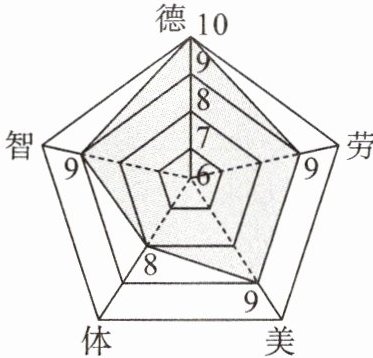 10. 某中学积极响应党的号召,大力开展各项有益于德智体美劳全面发展的活动. 小明同学在某学期德智体美劳的评价得分如图所示,则小明同学五项评价的平均得分为 (