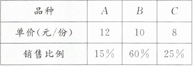 3. (无锡市中考)某食堂销售三种午餐盒饭的有关数据如表所示,该食堂销售午餐盒饭的平均价格是(