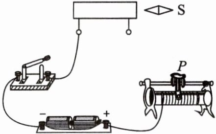 8. 如图所示,小磁针静止时右端的磁极为S极,请你用笔画线代替导线将电路连接完整,并完成螺线管上导线绕线,使变阻器滑片移动可以改变螺线管的磁性强弱。