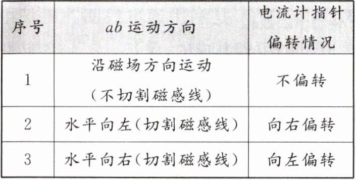 (3)交换实验图中蹄形磁铁两极的位置,重复做序号2实验,当导体棒ab水平向左做切割磁感线运动时,电流计的指针将向