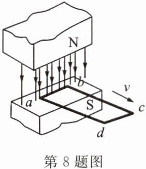 8. 如图所示,闭合导线框abcd的一部分处于磁场中,将导线框沿图示方向拉出的过程中(