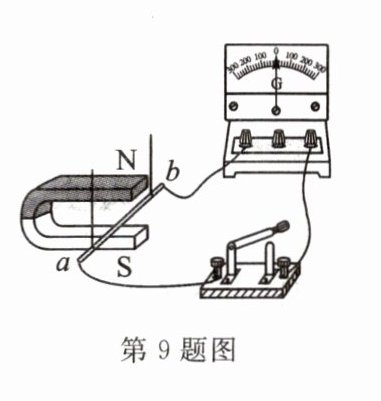 9. 小明用如图所示的装置来探究感应电流产生的条件(图中灵敏电流计指针方向改变即表示电流方向改变)。