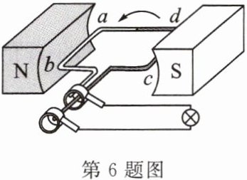 6. 如图所示是发电机模型,线圈在转动过程中下列说法正确的是(