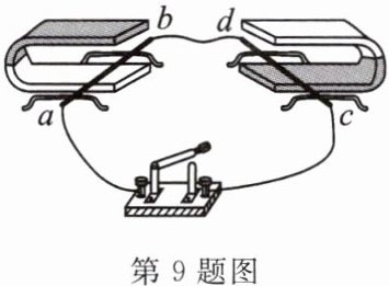 9. 同学们做实验的装置如图所示,闭合开关,先将导体ab水平向右移动,导体cd也随之运动起来。可知:实验装置左侧运用的原理是