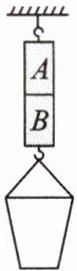 12. [质疑创新]为了说明分子之间有引力,小明在实验室用两个铅柱做实验,如图所示。铅柱A和铅柱B所受的重力均为2N,两个铅柱接触面的面积为$3cm^2,$当悬挂重物所受的重力为20N时,两个铅柱没有被拉开。于是,小明认为这个实验说明了分子之间存在引力。小华观测到该实验室的大气压为$1×10^5Pa,$于是她认为两个铅柱之所以没被拉开,是因为大气压的作用。利用所学知识和上述数据可得铅柱B所受的大气压力为