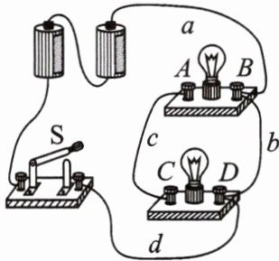 )A.要想使两灯并联,可将导线$d由D$点拆下,接到$C$点