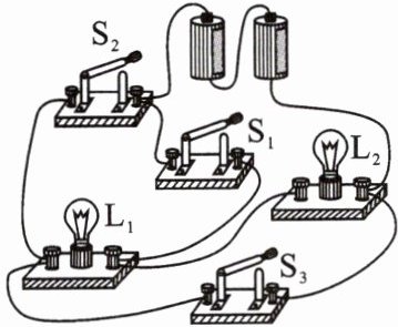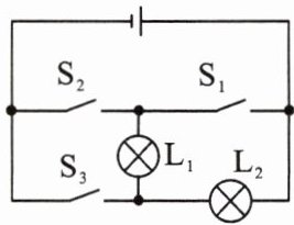 )A.同时闭合$S_{1}和S_{3}$,断开$S_{2}$,则灯$L_{1}和L_{2}$组成串联电路