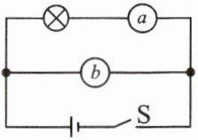 9. 如图所示的电路中,a、b是电表,闭合开关后电灯发光,则(