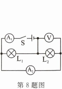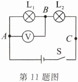 11. 灯$L_1$与$L_2$串联,先用电压表测出灯$L_1$两端的电压,如图所示,再测$L_2$两端电压时,只将电压表接A的一端改接在C处,这种接法