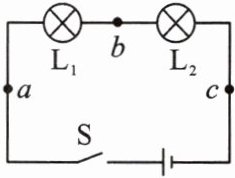 。如图所示,将电流表分别接在电路中$a$、$b$、$c$处,测出通过各处的电流分别为$I_{a}$,$I_{b}$,$I_{c}$,它们之间的关系是$I_{a}=I_{b}=I_{c}$