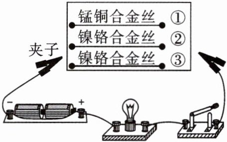 3. 如图所示,线路板上的三根合金丝的长度相同,①和②粗细相同但比③细,小乐用该装置探究影响导体电阻大小的因素。下列说法错误的是(