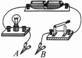 (1)如图所示在开关和小灯泡之间连着两个金属夹 A 和 B,在金属夹之间分别接入①硬币、②铅笔芯、③橡皮、④塑料尺,闭合开关后,在 A、B 接入