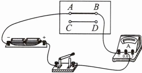 11. 如图所示,AB、CD 是长度相同的两条镍铬合金线,AB 的横截面积大于 CD 的。将它们分别接入电路进行实验,则接 AB 时电流表的示数